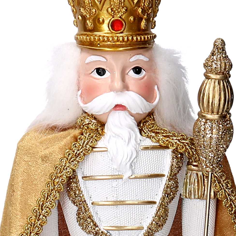 Soldatino Schiaccianoci in resina con mantello argento e oro cm 11,5x10,4xh39