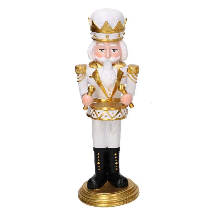- Soldatino Schiaccianoci in resinacon tamburo bianco e oro