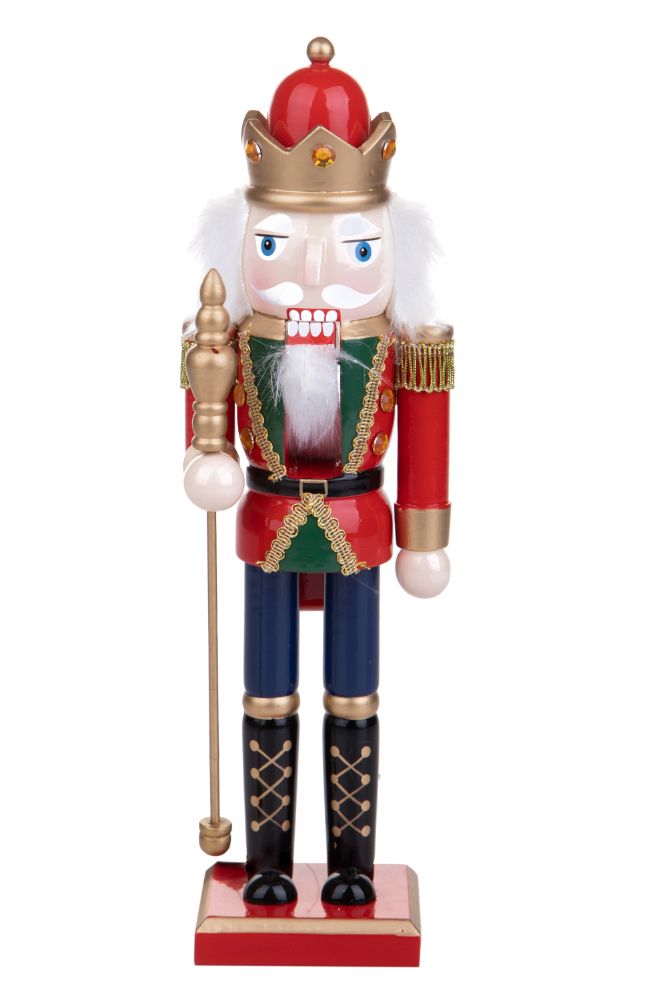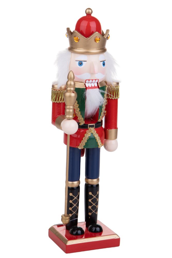 Soldat Casse-Noisette de Noël avec bâton en bois H30 cm
