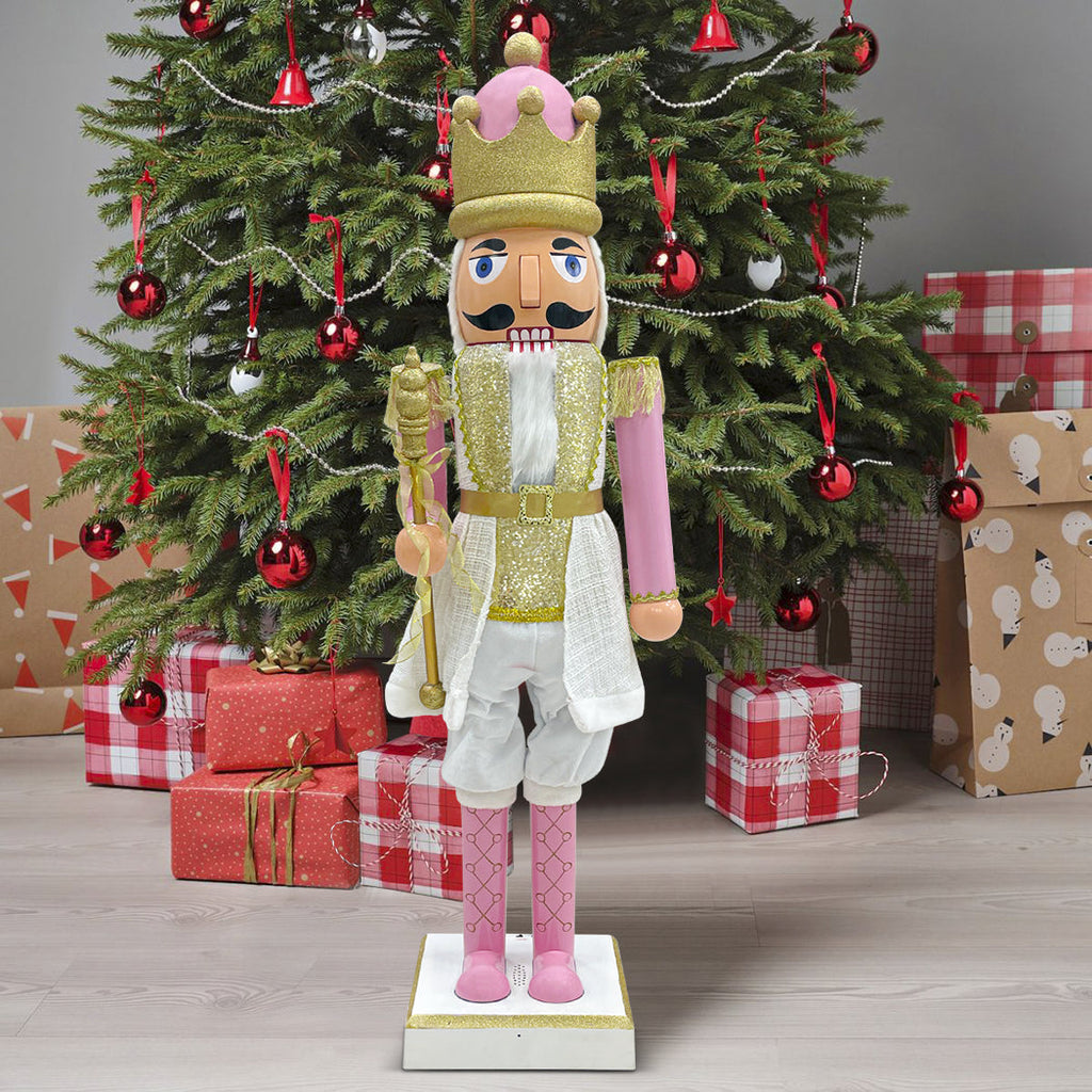 Noël Casse-Noisette Soldat H120 cm avec Sons et Mouvement Rose et Or