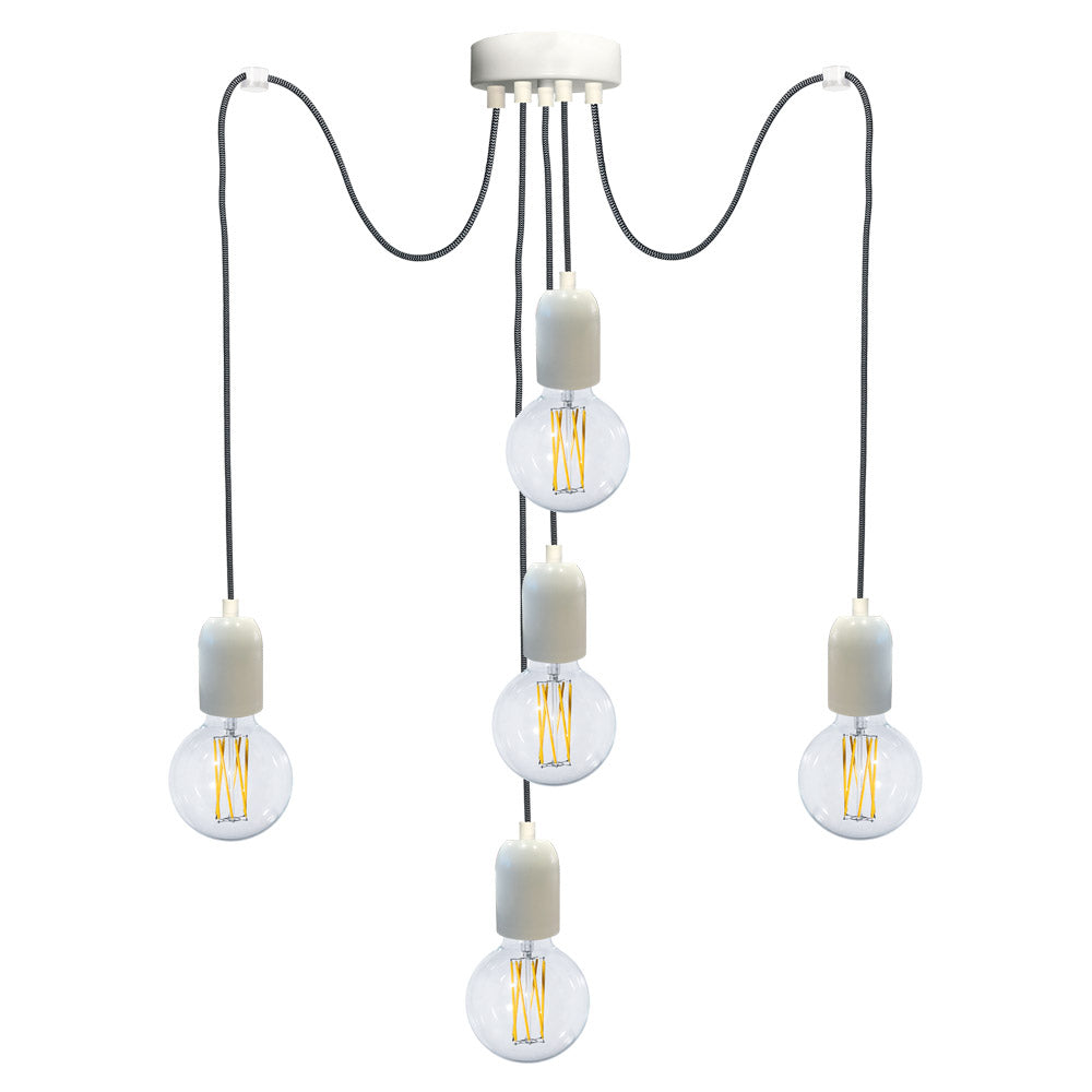 Suspension 5xE27 3Mt Cadre Peint Blanc E-Energy Elaide