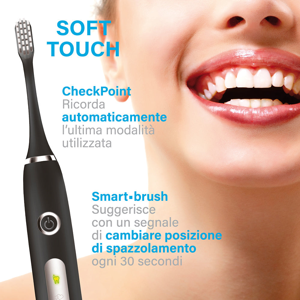 Pourquoi choisir Identité ? Parce que l'hygiène bucco-dentaire passe avant tout. Équipé de 4 têtes interchangeables et de 4 variations de massage, Identity prendra soin de votre hygiène bucco-dentaire, en restaurant votre sourire naturel. La fonction check-brush, par un signal acoustique, vous signalera quand changer la position de brossage et la fonction check-point vous rappellera le dernier mode d'utilisation. La batterie est rechargeable et garantit un cycle d'une durée de 3 semaines. Qu'attendez-vous pour vous offrir un nouveau sourire ?