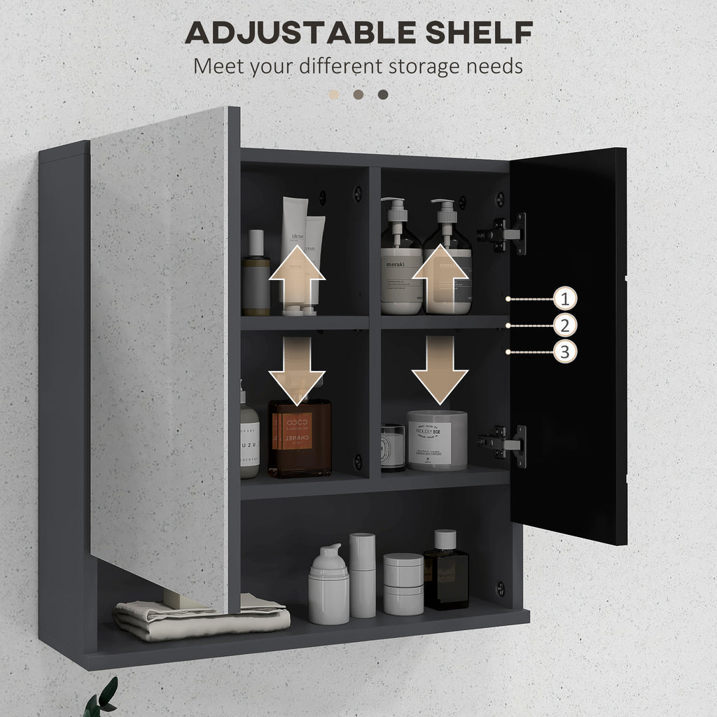 Specchio Armadietto da Bagno Pensile 2 Ante 55x17x55 cm in Legno Nero