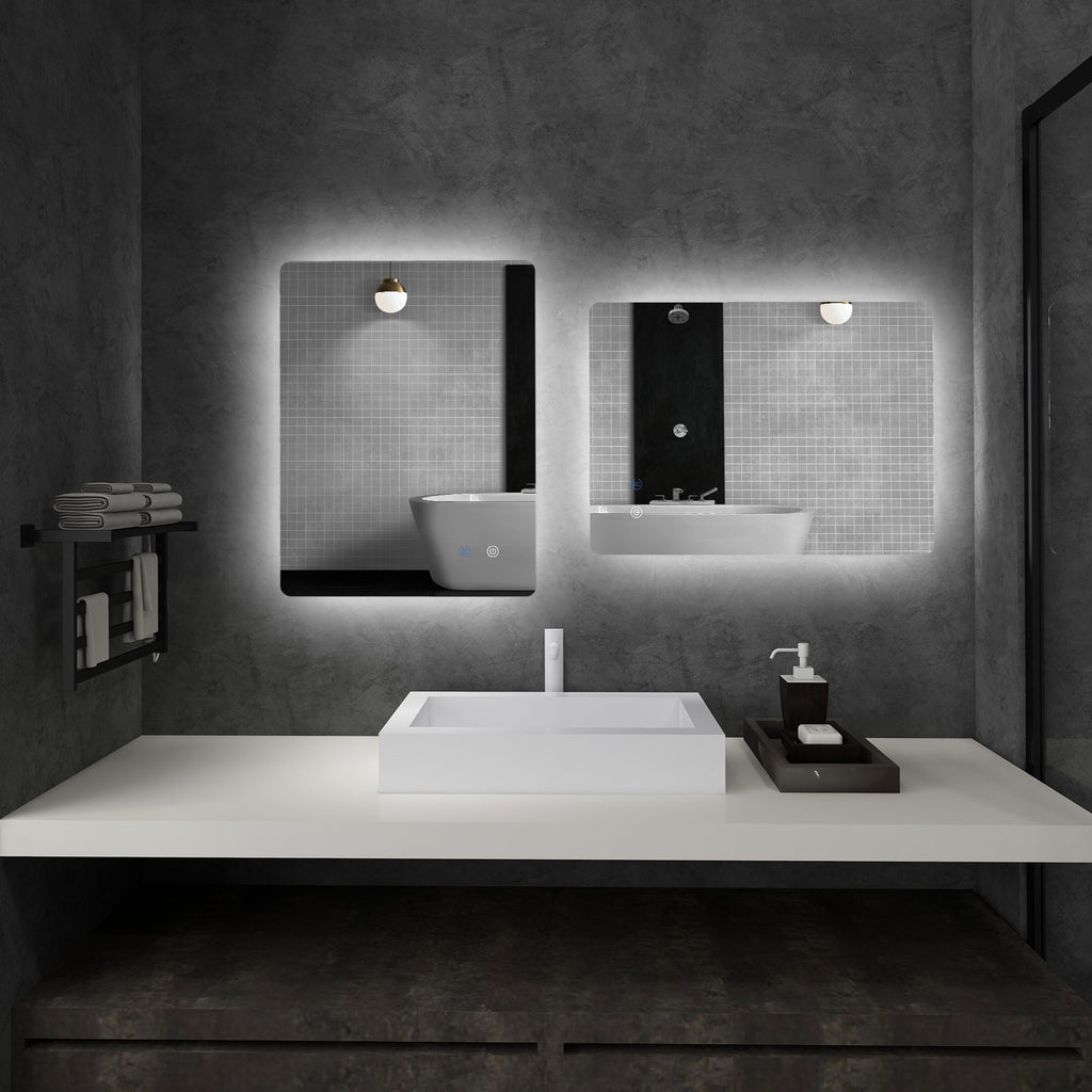 Specchio Bagno con Luci LED 3 Tonalità 70x50 cm Interruttori Touch e Funzione Antiappannamento