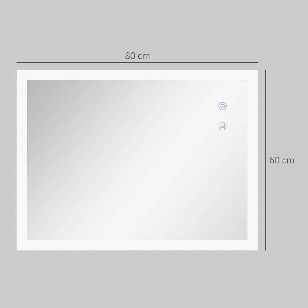 Specchio da Bagno 80x60x3 cm con LED 3 Colori Regolabili in Metallo e Vetro