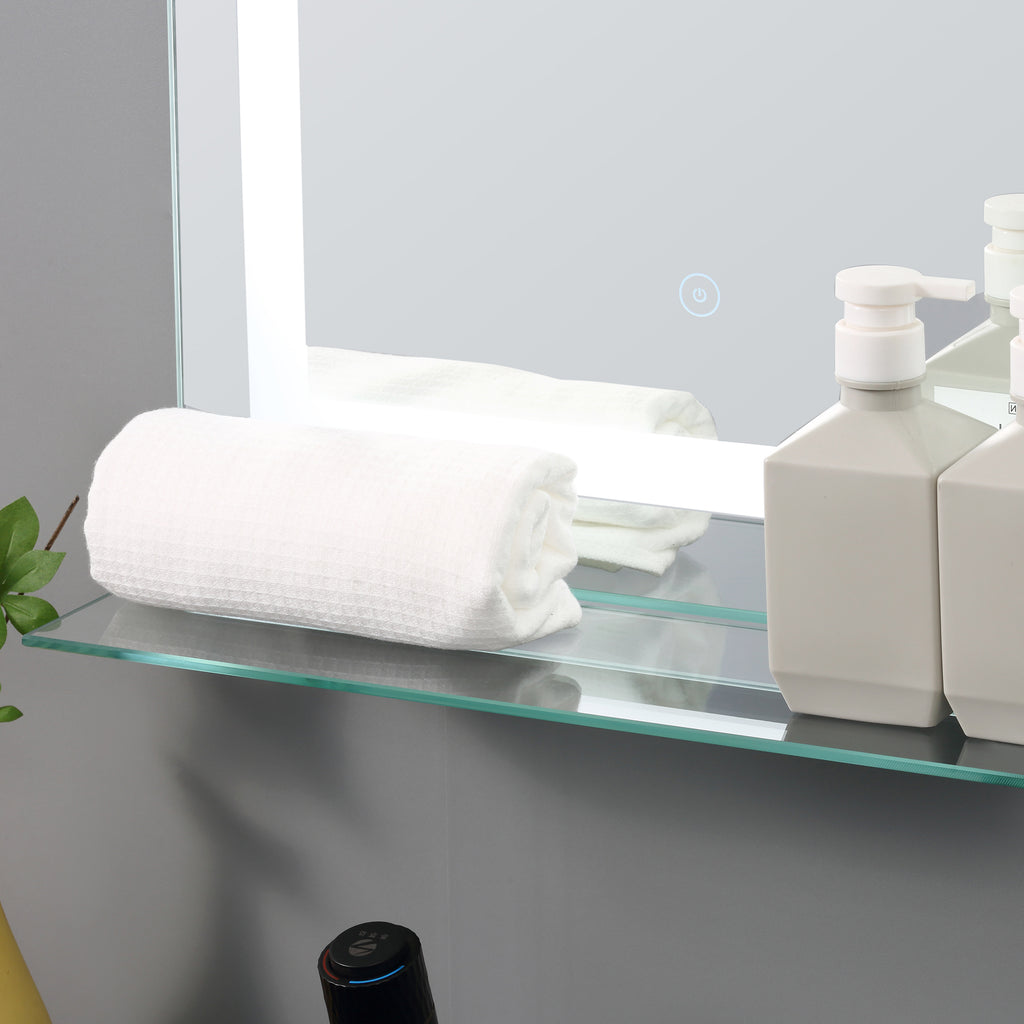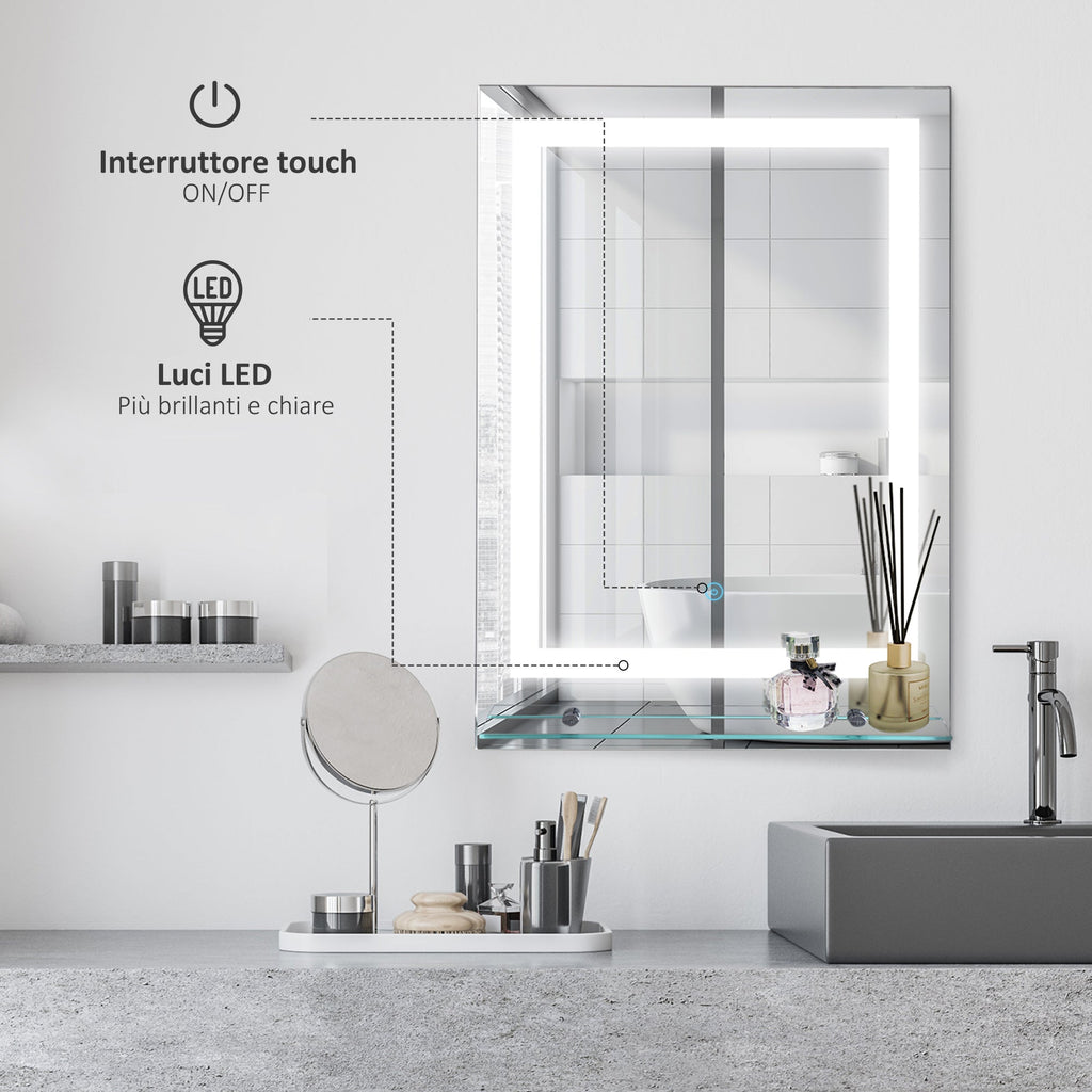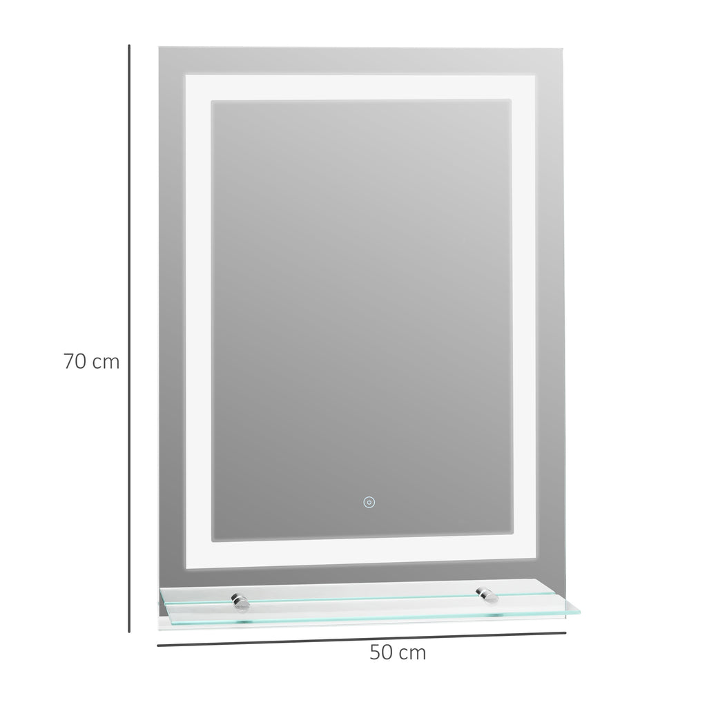 Miroir de salle de bain avec LED et étagère en verre 70x50 cm