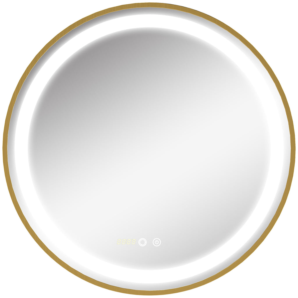 Specchio da Bagno con Luce LED 3 Tonalità e Funzione Memoria Ø60 cm Telaio in Alluminio Oro