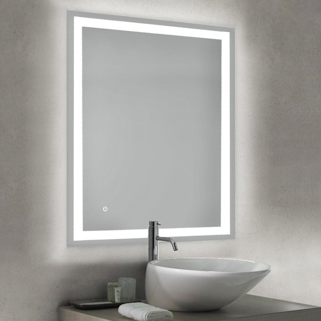 - Miroir de salle de bain rectangulaire avec éclairage frontal et rétroéclairage avec interrupteur tactile intégré (4000K).