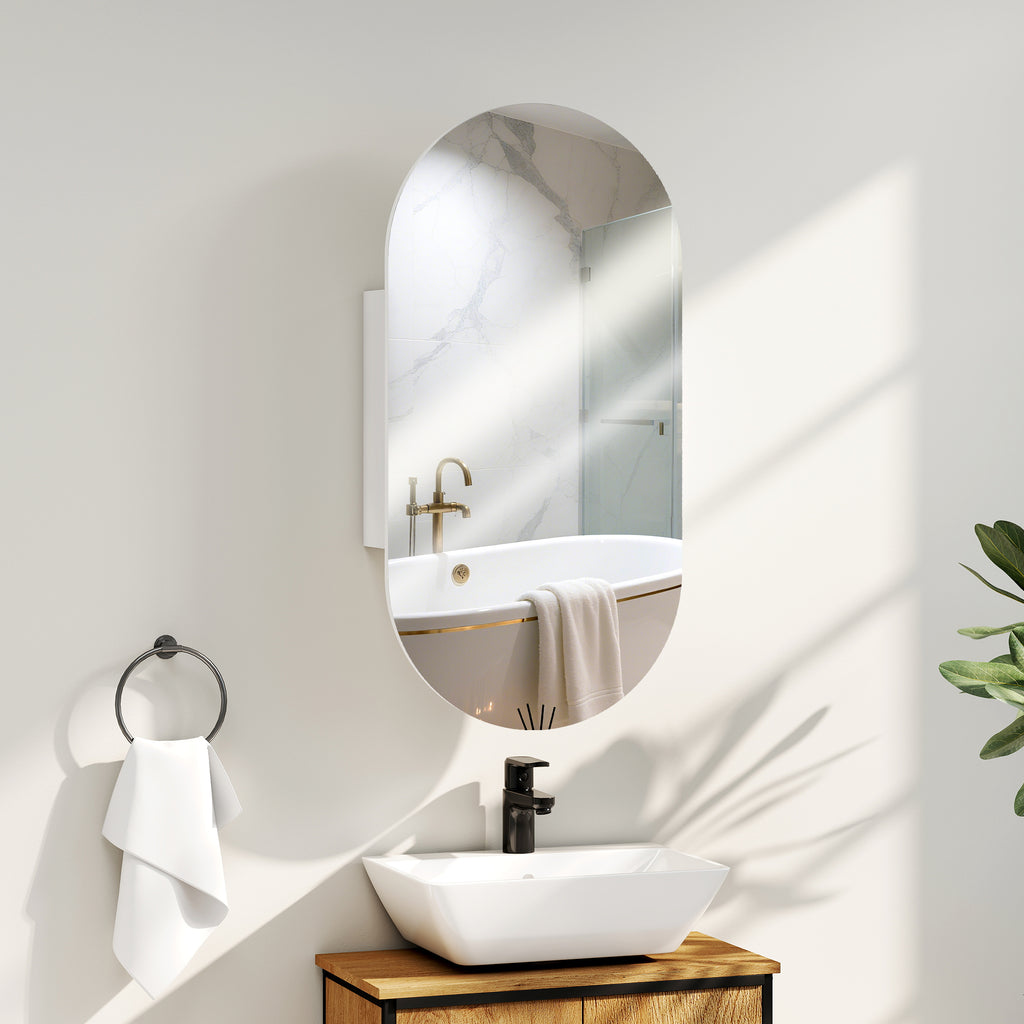 Specchio da Bagno Ovale 45x13,5x 90 cm con Armadietto in MDF Bianco