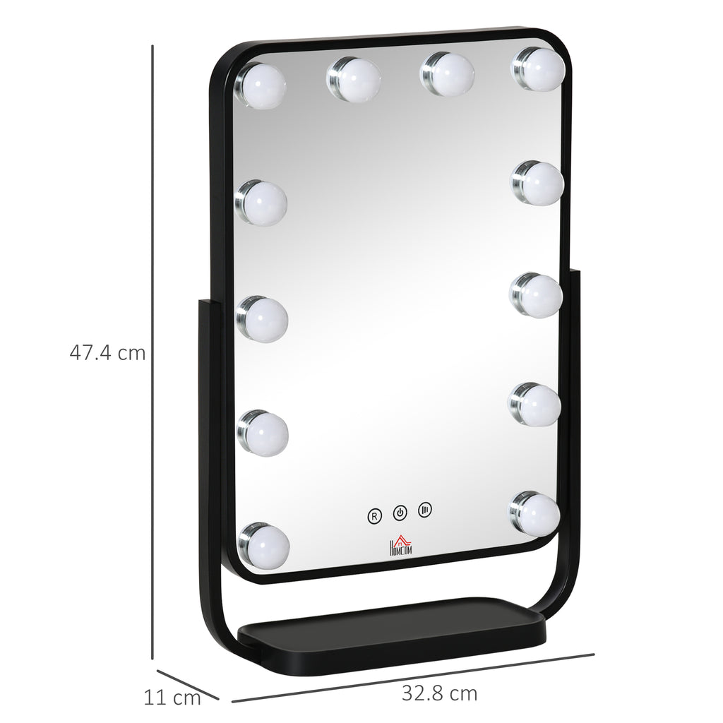 Ce miroir de maquillage de style hollywoodien est parfait pour vos besoins de beauté. Grâce aux 12 lumières LED, vous pourrez éclairer pleinement votre visage. Les trois boutons tactiles vous permettent de régler la lumière selon vos besoins. Vous pouvez modifier la couleur et la luminosité à votre guise, et grâce à la fonction mémoire, le miroir lumineux enregistre les derniers réglages. Le design réglable vous permet d'incliner le miroir pour une vue parfaite !