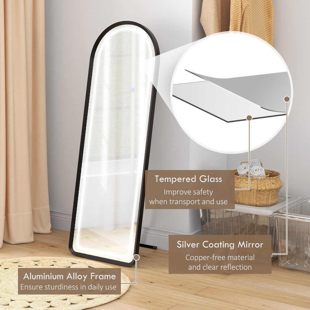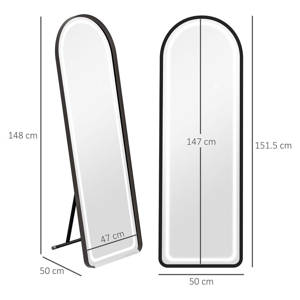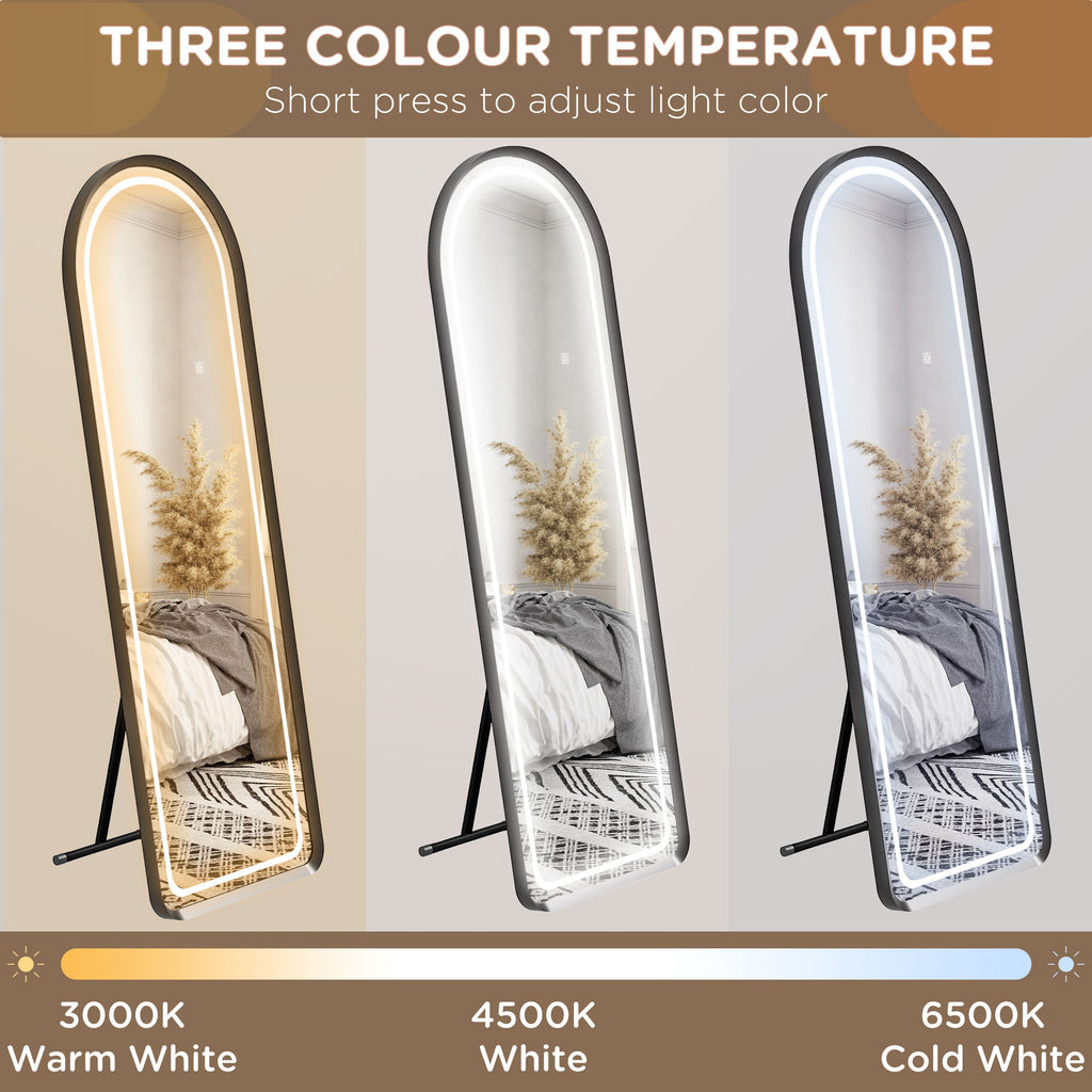 Specchio da Terra a 3 Colori e Luminosità Regolabile 50x50x148 cm in Alluminio Vetro Temperato e Acciaio Bianco