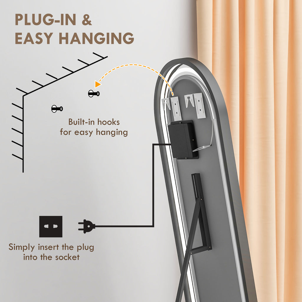 Questo specchio da terra con luci può aiutarti nel perfezionare le tue scelte di abbigliamento e routine. È possibile regolare i colori di luce e la luminosità tramite il pulsante touch per adattarsi a vari contesti. Il nostro specchio da camera da letto è dotato di staffa pieghevole e accessori per il montaggio a parete, in modo da poterlo utilizzare come specchio indipendente, a parete o appoggiato, consentendoti di posizionarlo in maniera diversa in base alle tue esigenze.