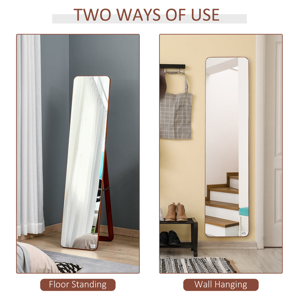 Miroir au Sol et Mural 37x43x156 cm Structure en Bois de Noyer Clair