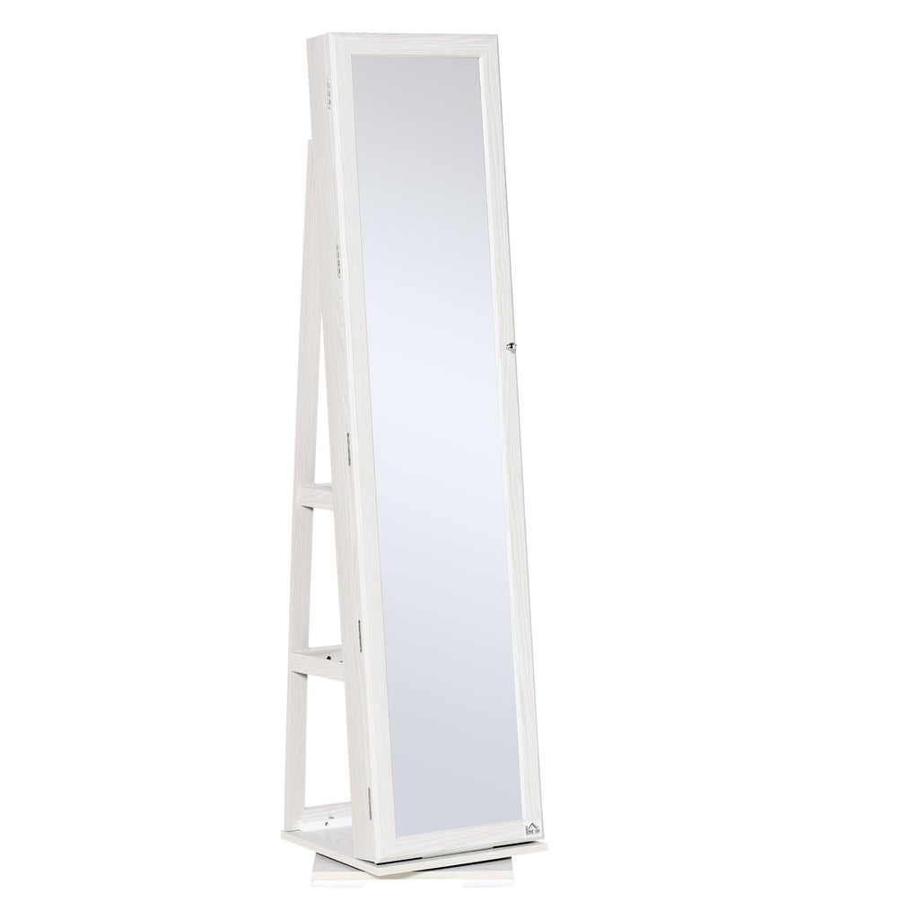 Miroir de sol pivotant Armoire à Bijoux 38x38x160 cm en MDF Blanc