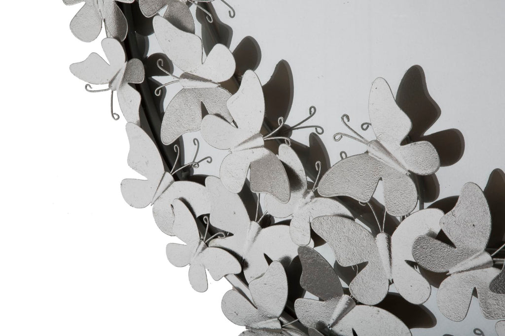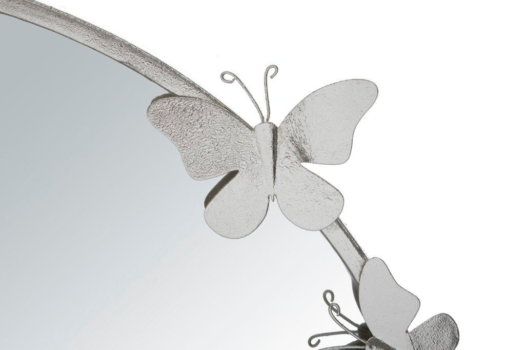 Miroir Papillon Rond Argenté Ø74x4x75 cm en Fer Argenté