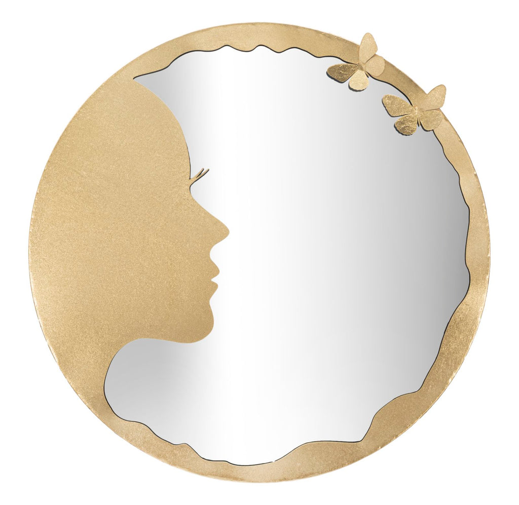 Miroir mural élégant avec cadre doré qui dessine le profil d'une femme. Particulier et intrigant, il s'adapte parfaitement à n'importe quel environnement, donnant une touche d'unicité.
