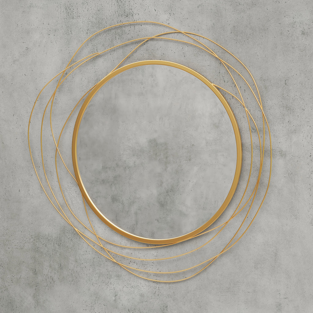 Scopri il fascino di questo specchio da parete rotondo , un complemento d'arredo avvolto da una cornice metallica asimmetrica unica e originale. Il nostro specchio a muro con vetro spesso e resistente all'ossidazione garantisce una bellezza nitida e duratura, mentre il design facile da appendere rende semplice aggiungere un tocco di eleganza al soggiorno, alla camera da letto o al corridoio.