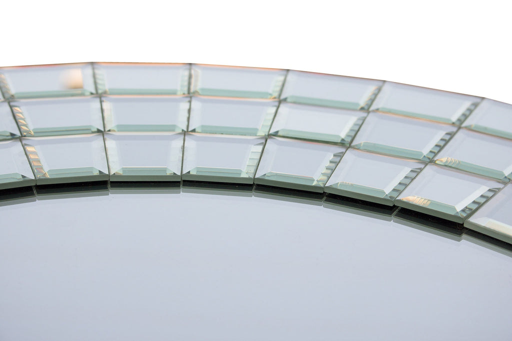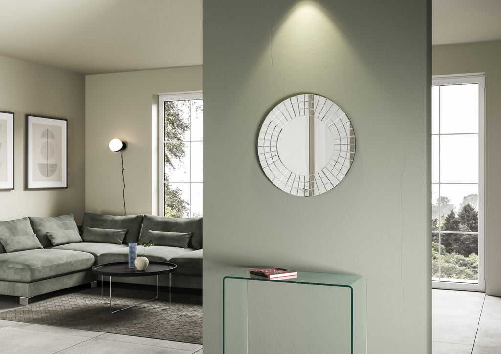 Specchio rotondo da parete Sorapis, uno specchio circolare dal design classico e tradizionale, perfetto da collocare in un ingresso, corridoio o soggiorno in combinazione con una consolle o tavolino. Ideale anche per un bagno o una camera da letto, lo specchio Sorapis saprà arricchire con classe ed eleganza qualunque ambiente. Specchio circolare composto da una parte centrale liscia di diametro 38 cm e da una parte perimetrale da 13 cm decorata con una trama a quadretti e a scacchiera.Uno specchio rotondo che aumenterà sensibilmente non solo la luminosità di uno spazio, ma anche la percezione di profondità, facendo apparire più spazioso, ampio e arieggiato qualunque ambiente. Il vetro è estremamente facile da pulire, sarà sufficiente un panno umido.