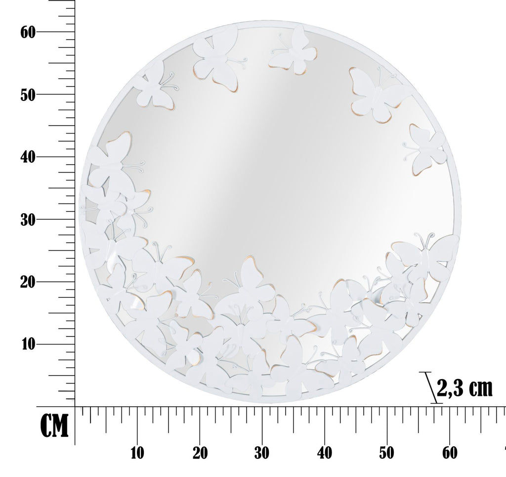 Miroir Rond Papillon Blanc 62,5x2,3 cm en Fer Miroir et MDF Blanc et Or