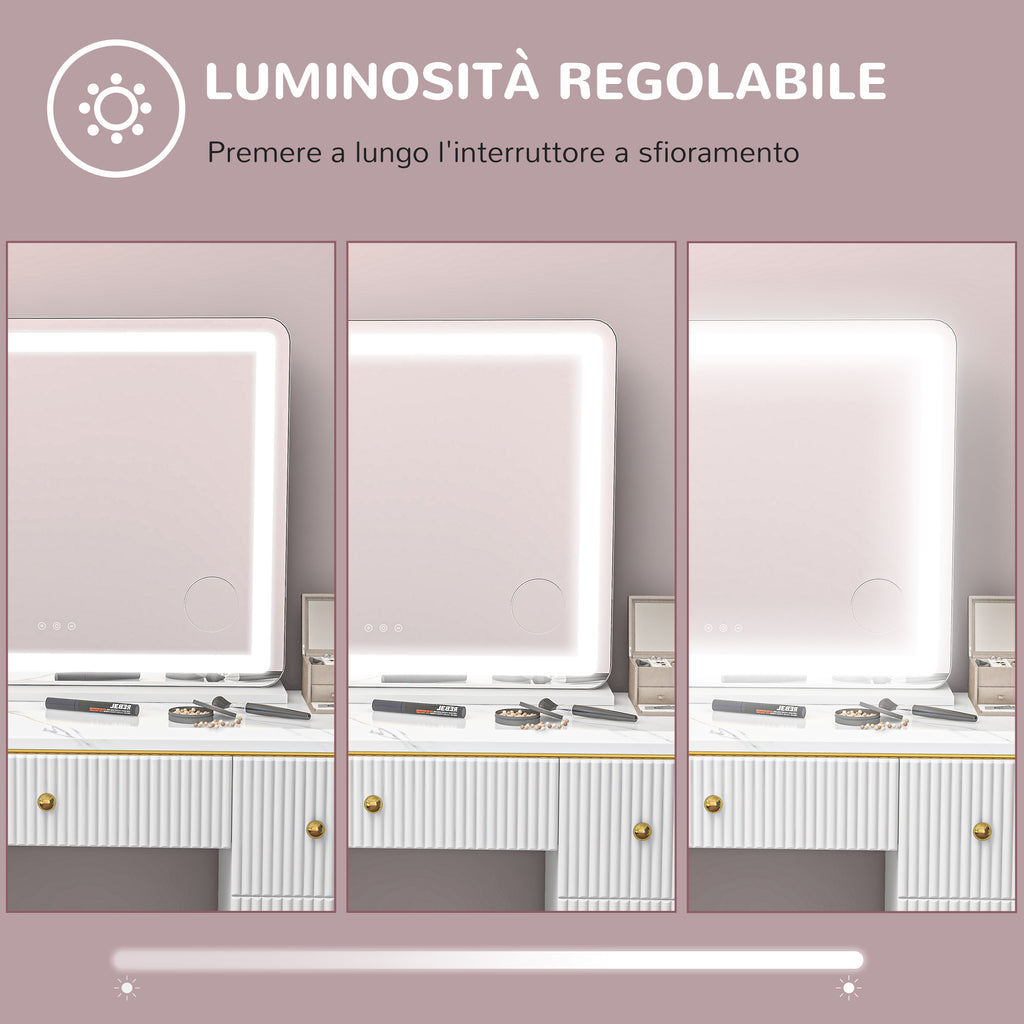 Specchio Trucco 80x62x14 cm con LED Regolabili Touch e Ingranditore 10x