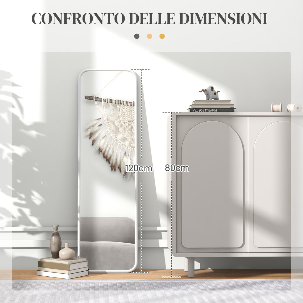 Specchio Verticale da Parete o da Terra 35x2x120 cm Cornice in MDF con Bordi Arrotondati Bianco