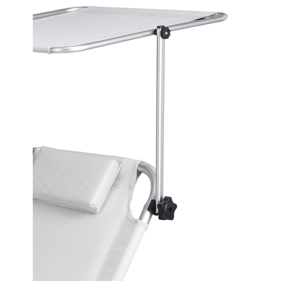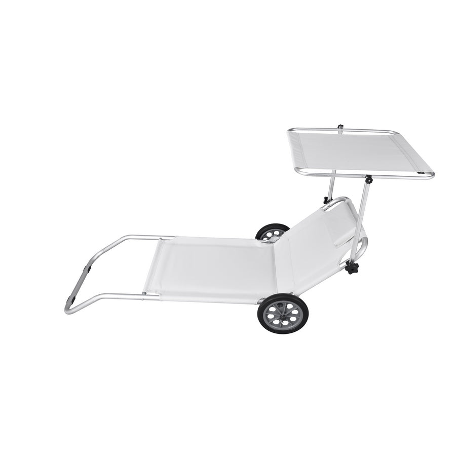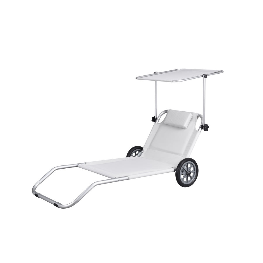 Scopri la comodità di possedere una sdraio con ruote 147 x 61 x 60 cm pieghevole, con parasole e confortevole poggiatesta.