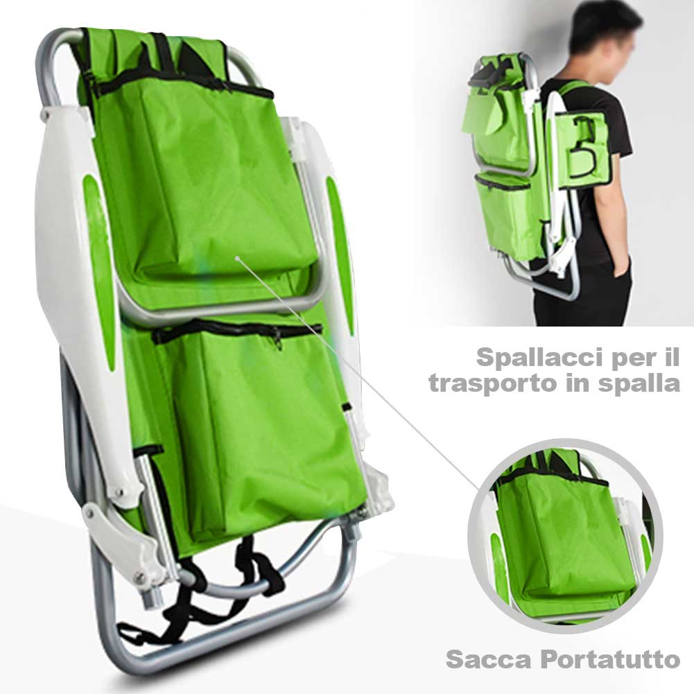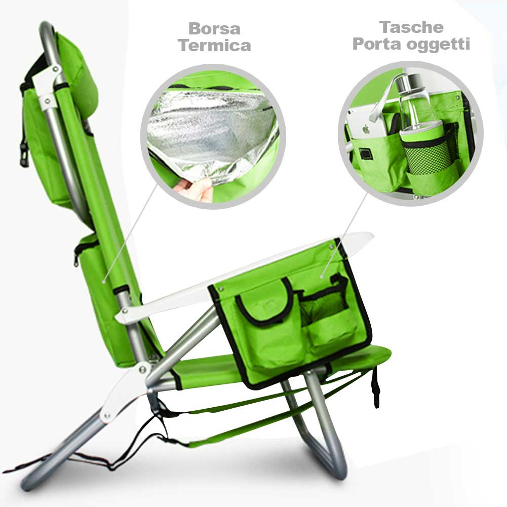 Spiaggina Pieghevole Sedia Spiaggia Alluminio con Borsa Termica Spallacci Verde