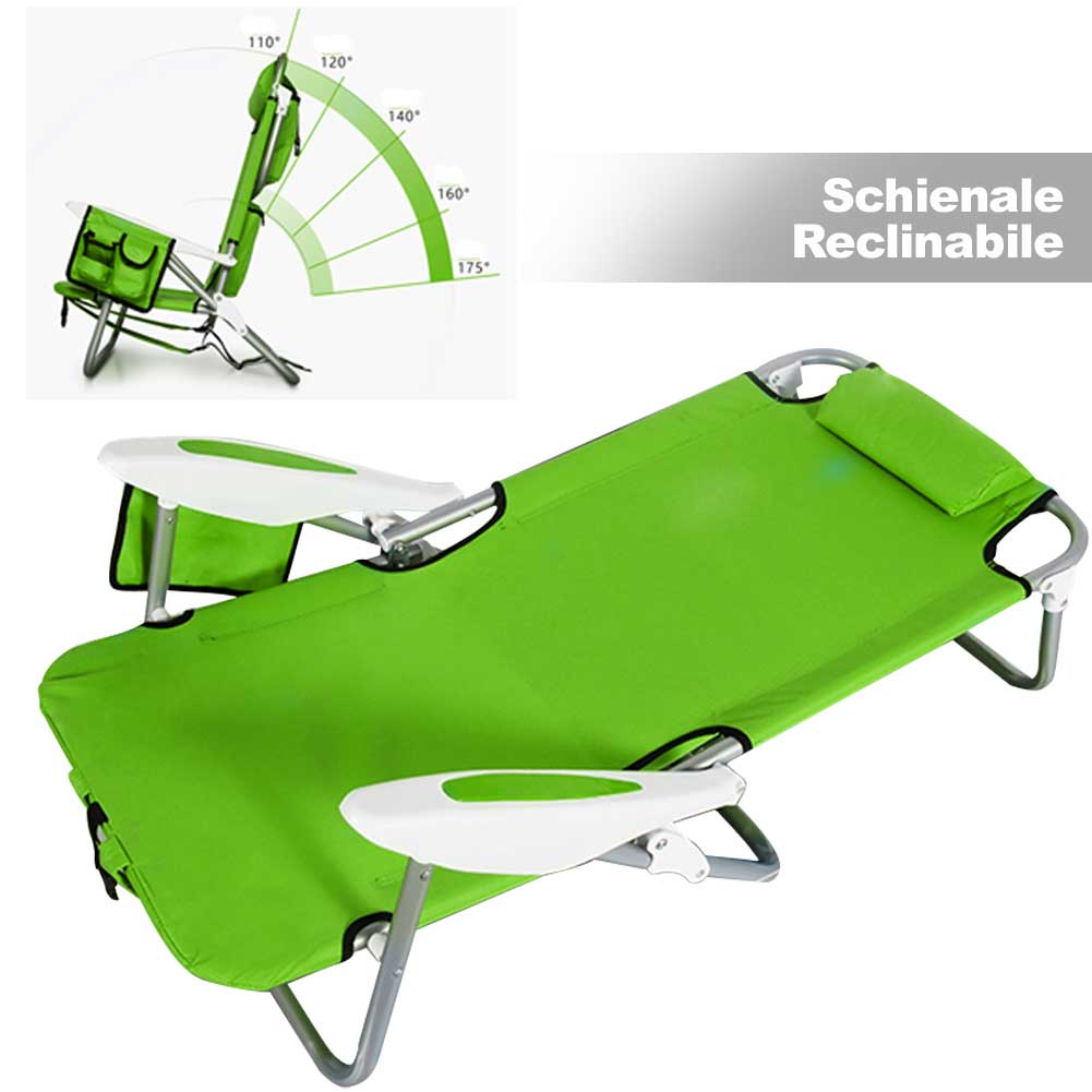 1 x Spiaggina Pieghevole Sedia Spiaggia Alluminio conBorsa Termica e Spallacci Verde