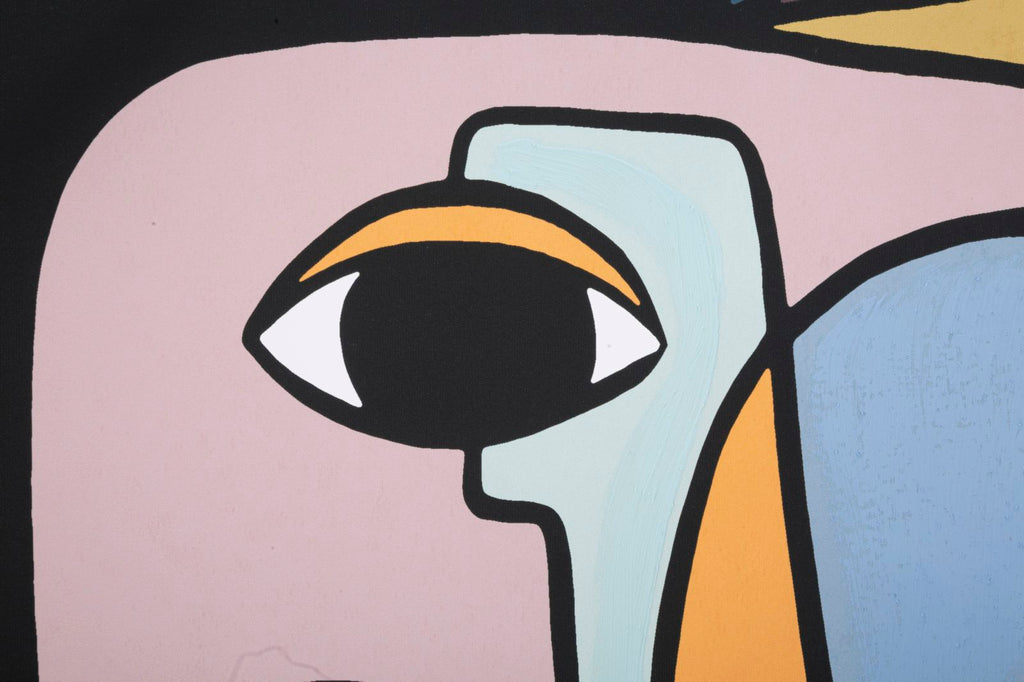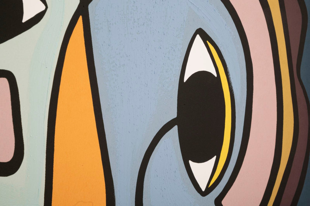 Stampa Dipinta Faces 60x3x90 cm in Legno e Tessuto
