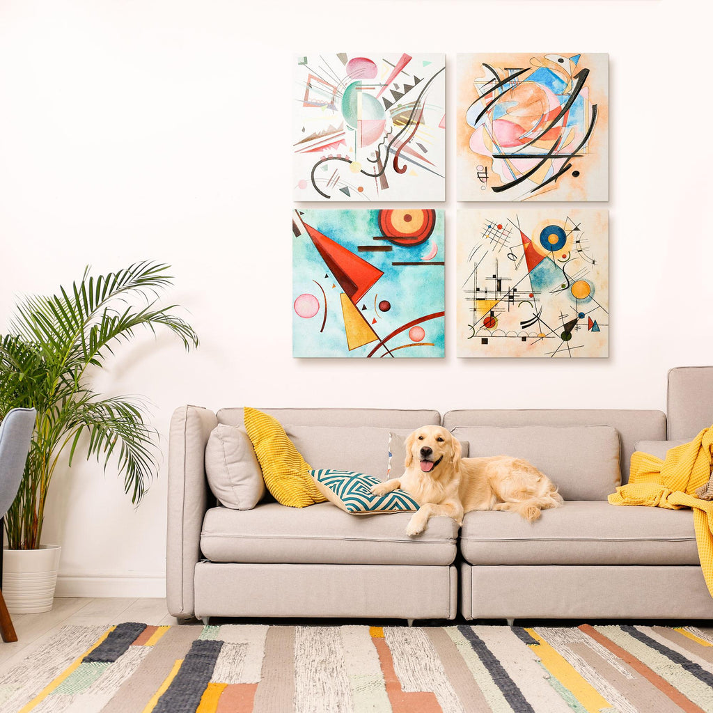 - 4 pièces : conçues par des professionnels, donnez à votre maison une touche de couleur vibrante avec ces peintures abstraites sur vos murs.
