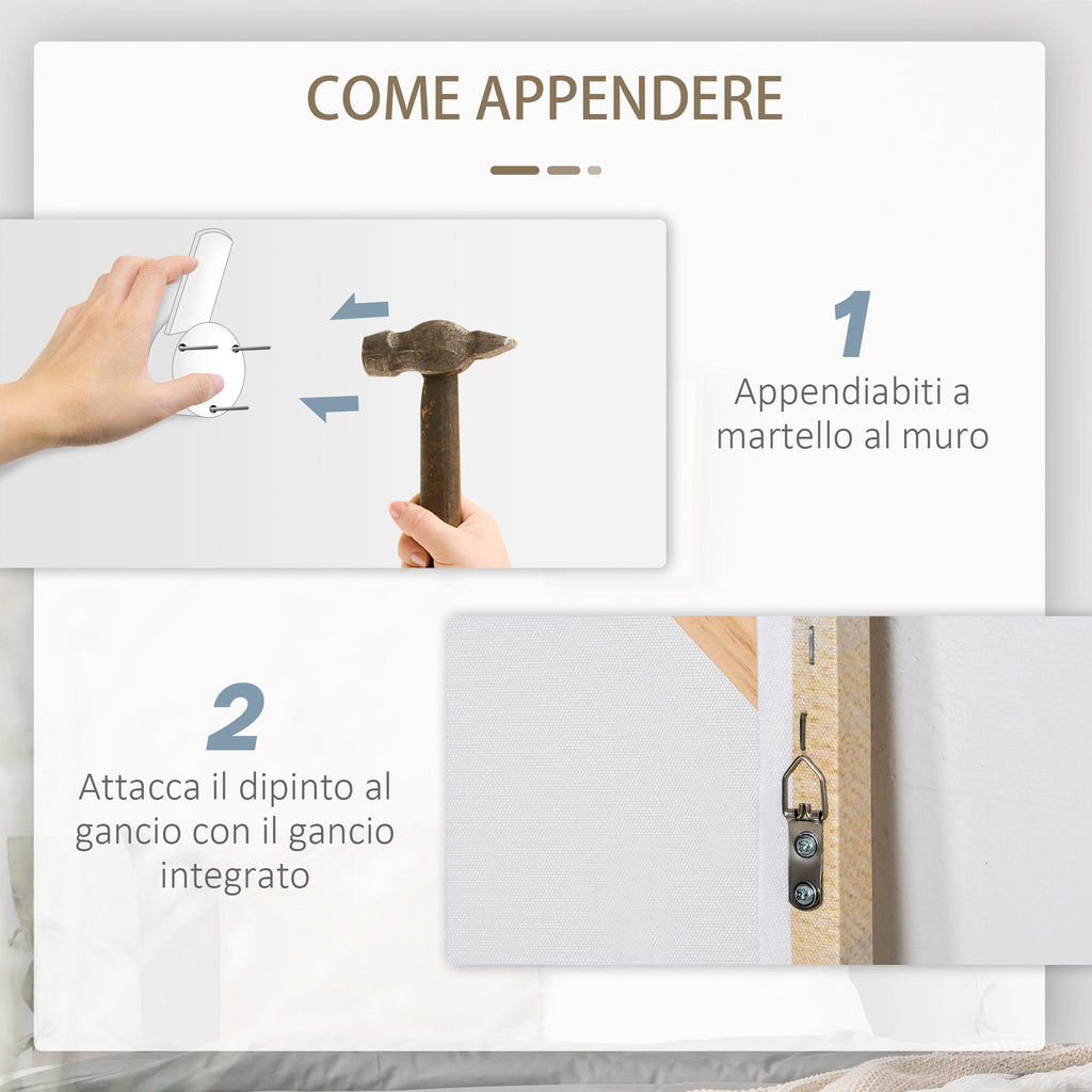 - Prêt à accrocher : cette impression sur toile est pratique à accrocher avec des cintres intégrés sur le cadre en bois de pin et les accessoires de suspension inclus.