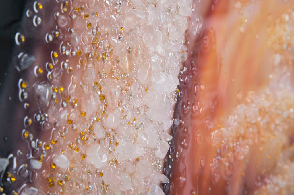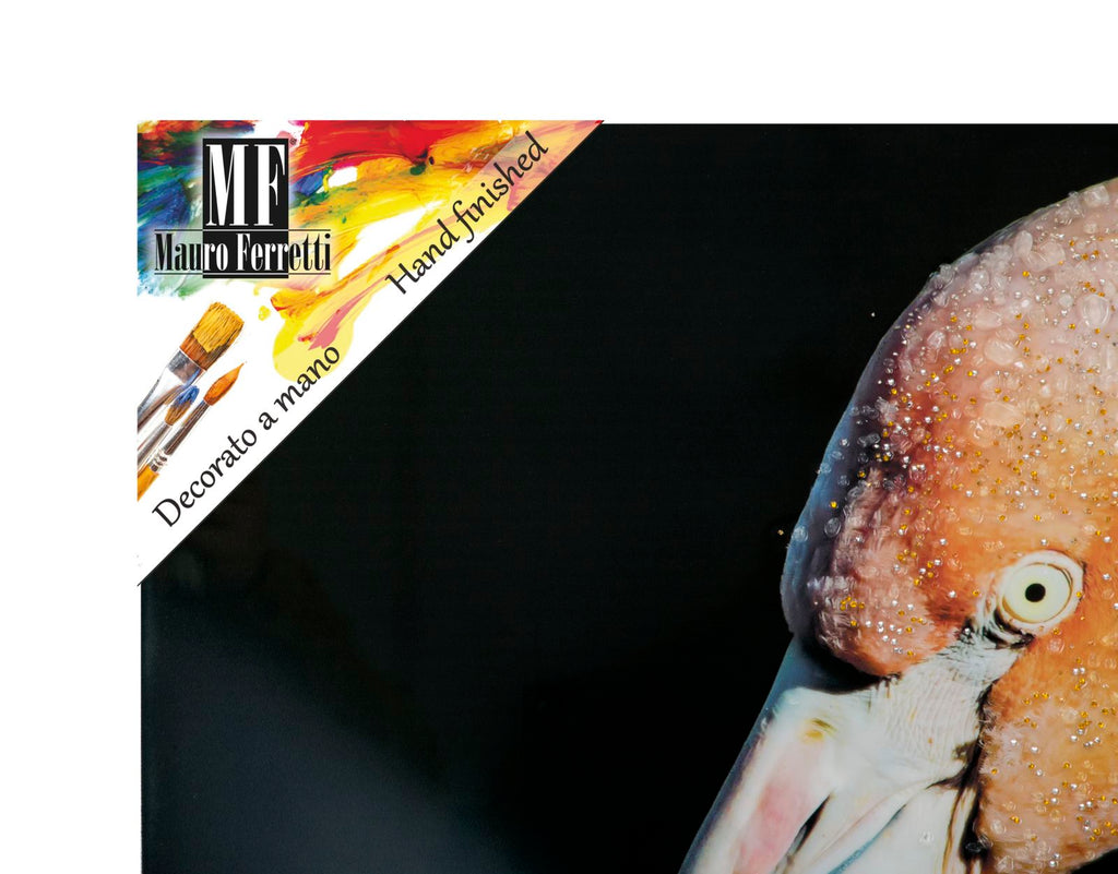 Impression sur toile avec cadre en bois. De majestueux flamants roses agrémentés d'applications nacrées habillent les murs de votre intérieur avec style