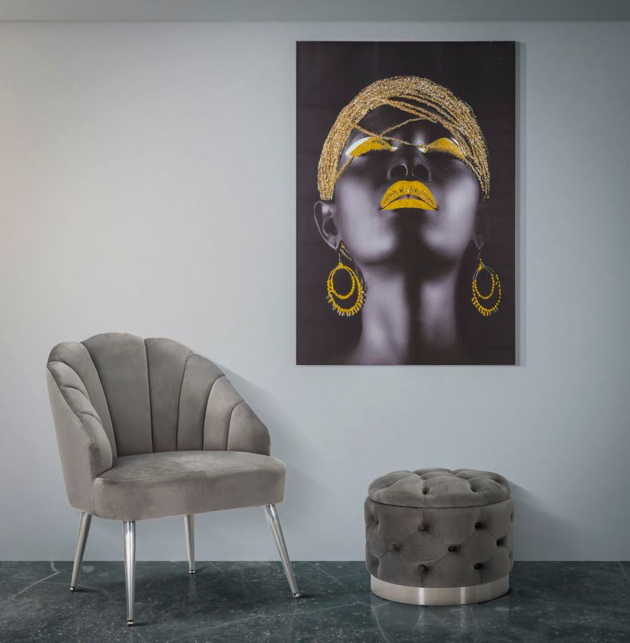 Impression sur toile avec cadre en bois représentant un visage féminin. Le style moderne, les tons doux et les applications élégantes donnent une touche de classe à n'importe quel environnement.