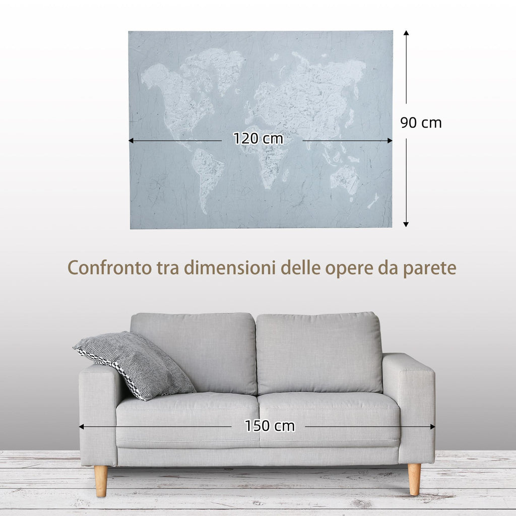 Impression sur Toile Monde 120x90 cm en Bois de Pin Gris et Blanc