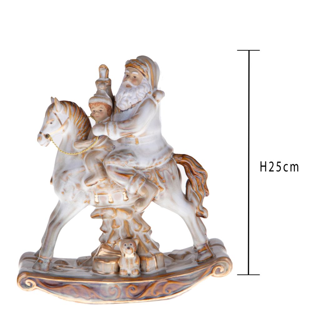 Statuina Babbo Natale con Cavallo 25 cm in Porcellana Bianco