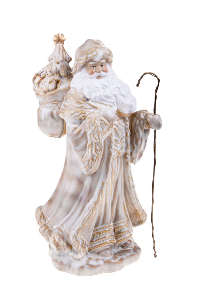 Statuina Babbo Natale con Sacco 48,5 cm in Porcellana Bianco