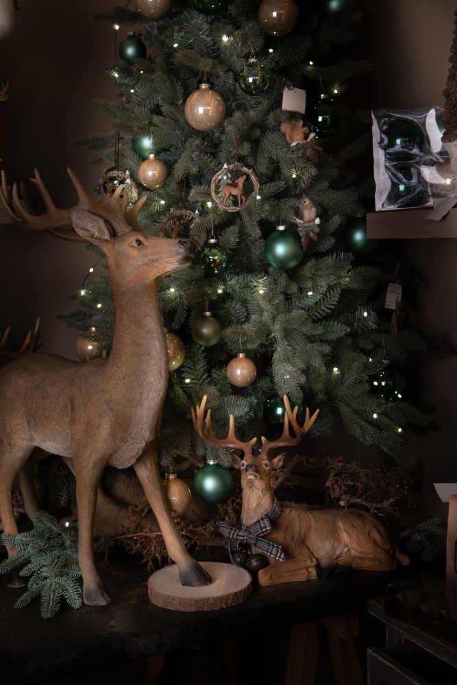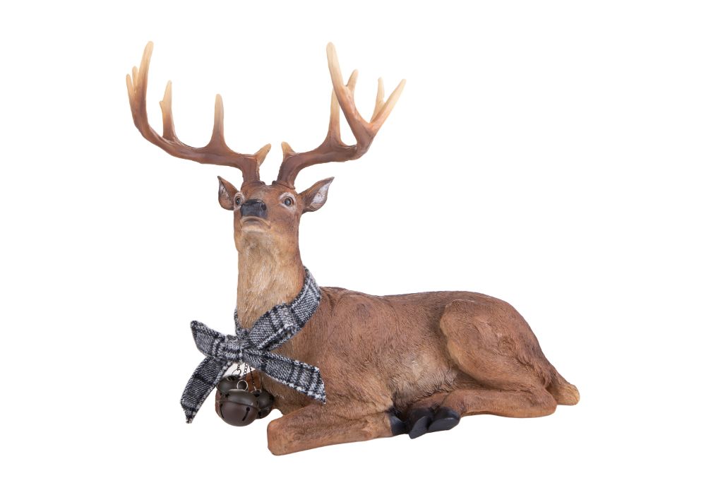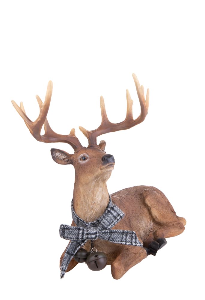 Figurine de Noël Renne Assis avec Noeud 34 cm en Résine