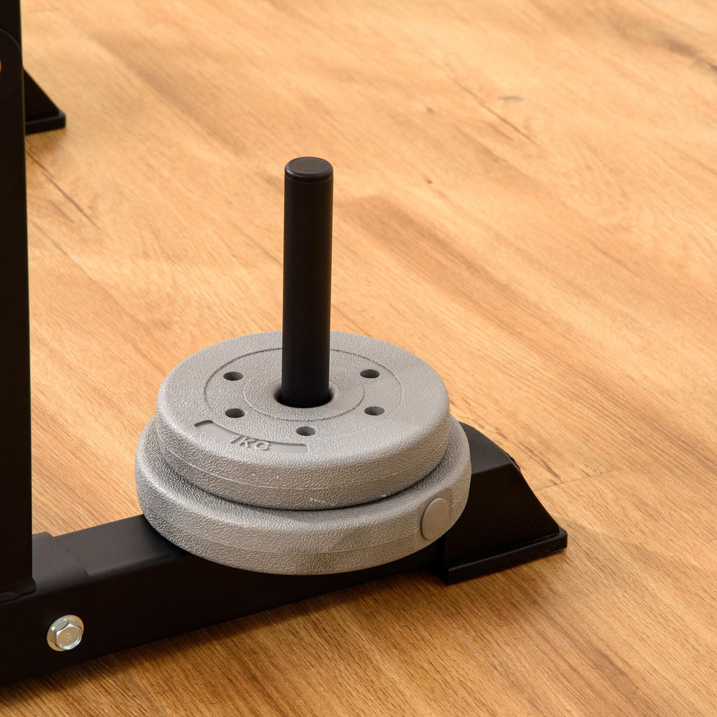 Rester en forme est plus facile avec cette station de fitness multifonctionnelle. Conçu pour faire de l'exercice à la maison, il vous permet d'effectuer divers exercices, notamment des barres parallèles, des tractions et des redressements assis. Le cadre de la tour de puissance est en acier et est conçu pour supporter des charges intenses et pour vous offrir un maximum de confort lors de l'utilisation : le rembourrage en polyuréthane sur les poignées et les accoudoirs, en effet, rend l'entraînement plus confortable.