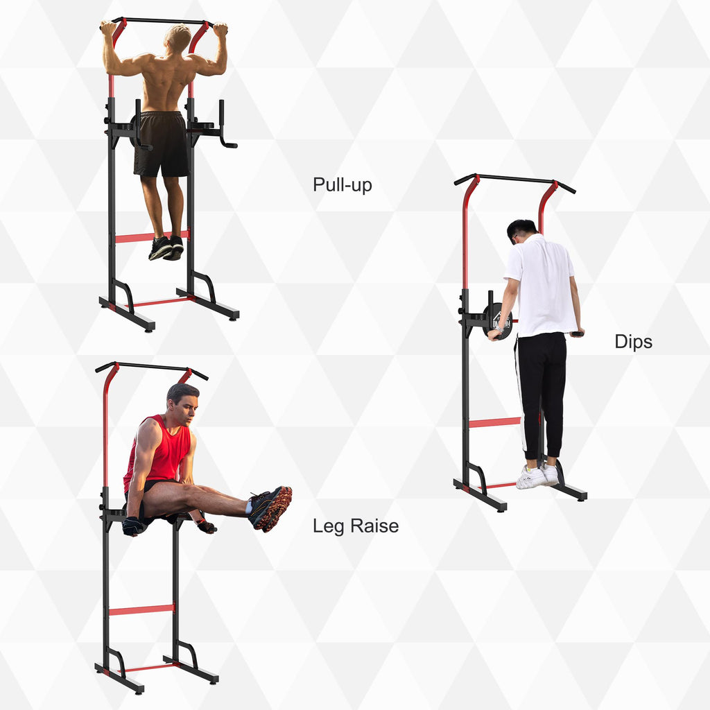 Station Multifonction pour Push-ups de Traction Abdominale en Acier Power Tower Noir et Rouge
