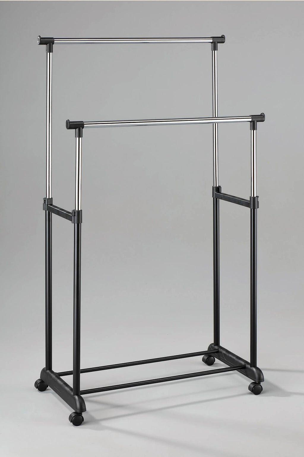Portant double en métal chromé noir 81x43x160 cm Transat Duo Noir Chrome
