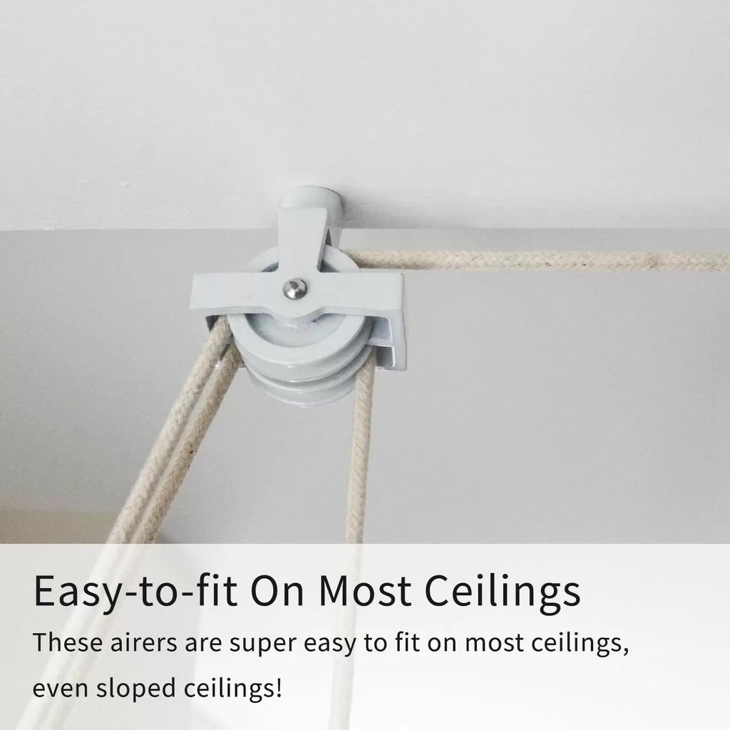 - Sèche-linge de plafond solide et robuste avec système de poulies blanches