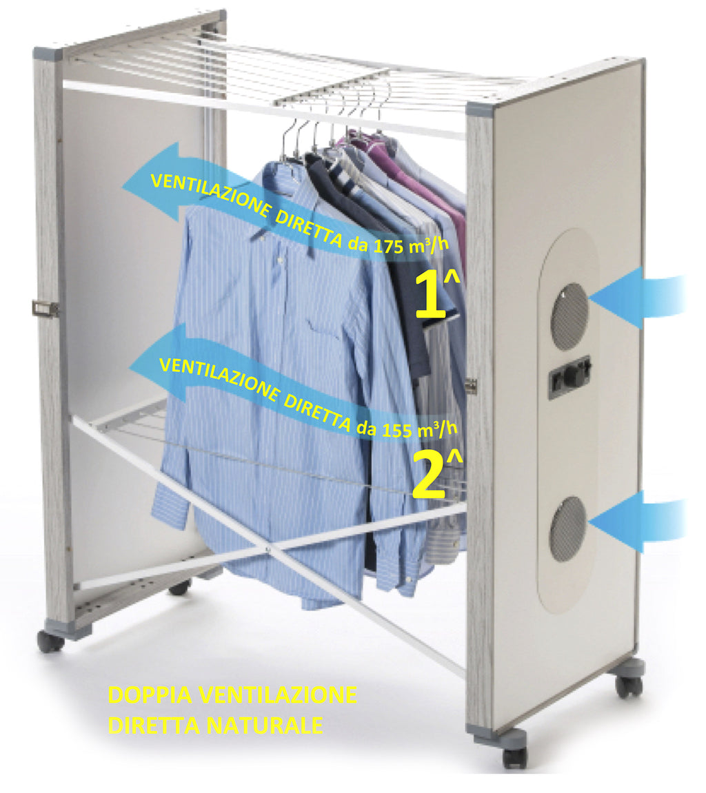 Alfie 690 Special sèche le linge sans chauffer l'air grâce à la ventilation directe de 2 moteurs latéraux à grande vitesse.