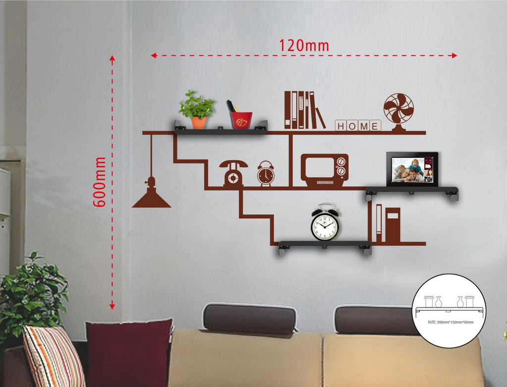 Sticker Mural Maison avec Etagères 120x60 cm Plastique