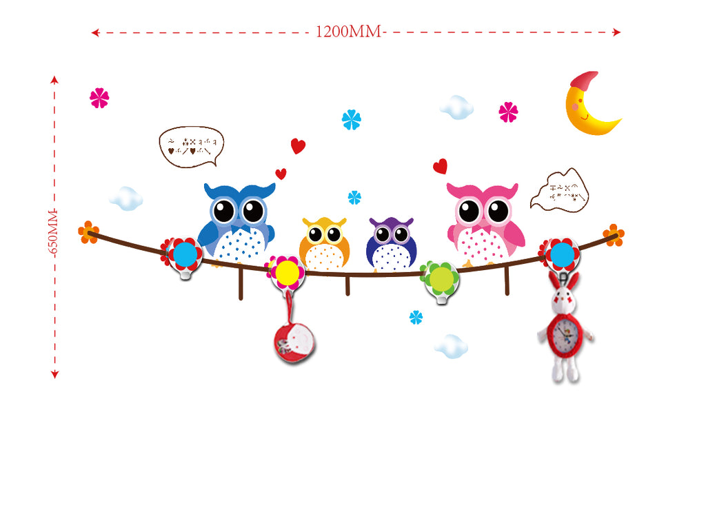 Autocollant mural hibou avec cintres 120x65 cm en plastique