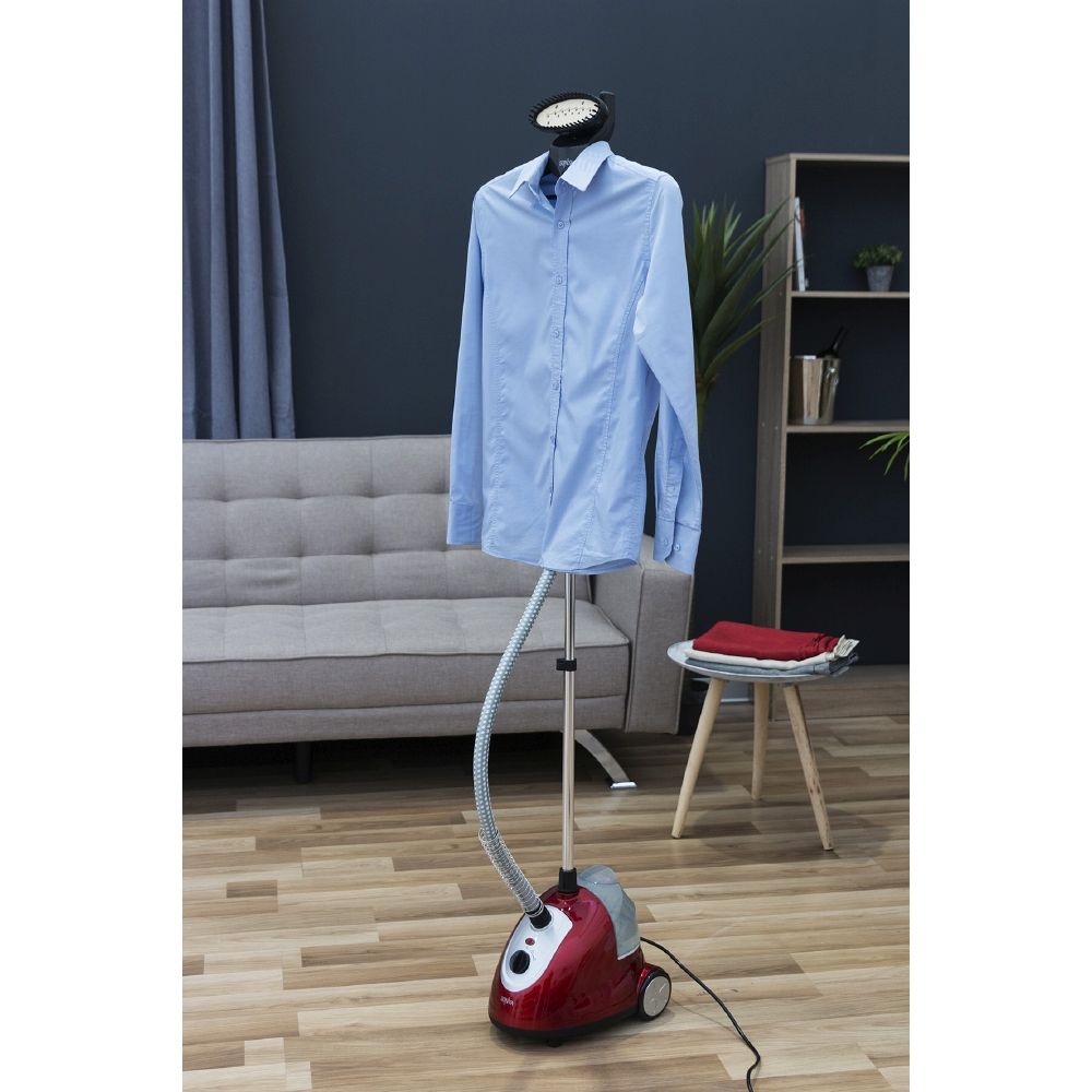Pourquoi choisir la repasseuse verticale ? Parce qu'il va révolutionner votre façon de repasser.Conçu pour un usage domestique sur tous les tissus, il représente une véritable alternative au repassage traditionnel. La hauteur réglable de la tige métallique s'adapte à tous les besoins. Facile à utiliser et efficace dans les résultats, grâce à la puissance de la vapeur, il élimine les plis et régénère les vêtements en éliminant les odeurs. Il est possible de régler les deux vitesses de fonctionnement en fonction du type de tissu. Dans les deux cas, le jet sera précis et éliminera les plis les plus critiques même dans les points difficiles d'accès. Enfin vous pourrez repasser vos chemises rapidement et sans effort. Ils seront à nouveau parfaits car ils viennent d'être achetés ! Grâce au cintre multi-positions pratique, les vêtements resteront bien positionnés sur la repasseuse. Petit secret La vapeur grâce à la brosse pénètre à travers le tissu en lui redonnant la douceur naturelle.
