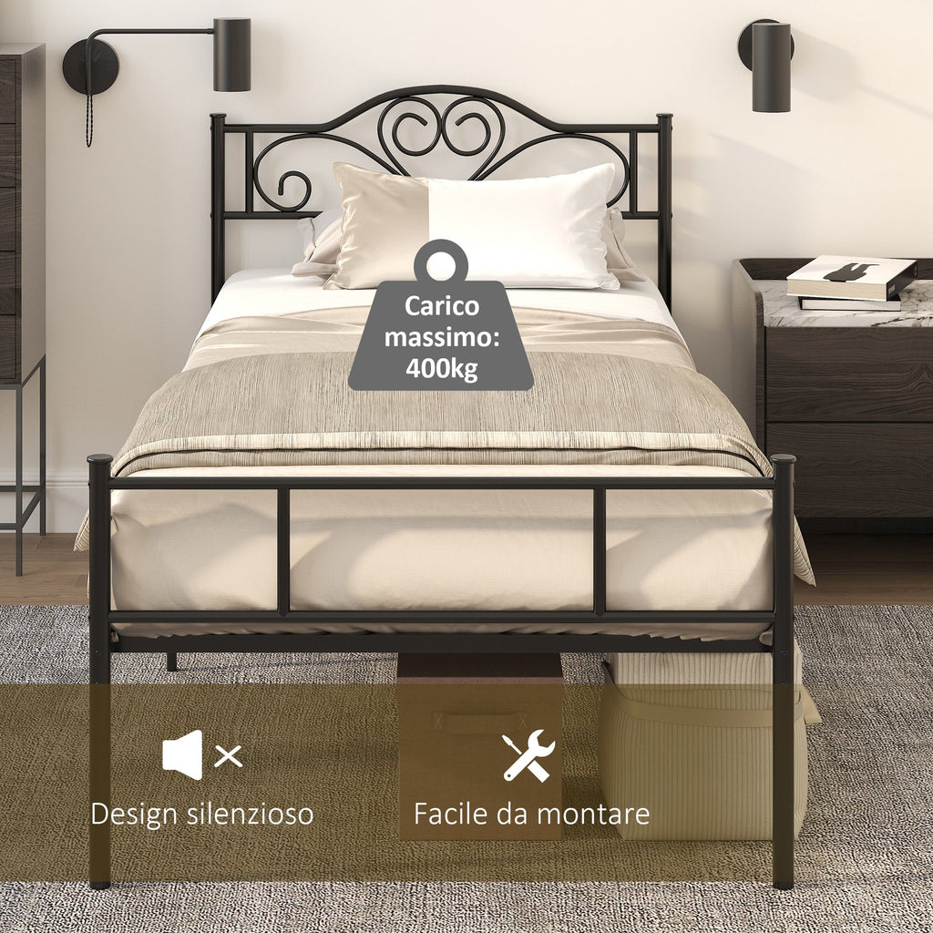 Structure Lit Simple 90x200 cm en Acier Noir avec Lattes Intégrées