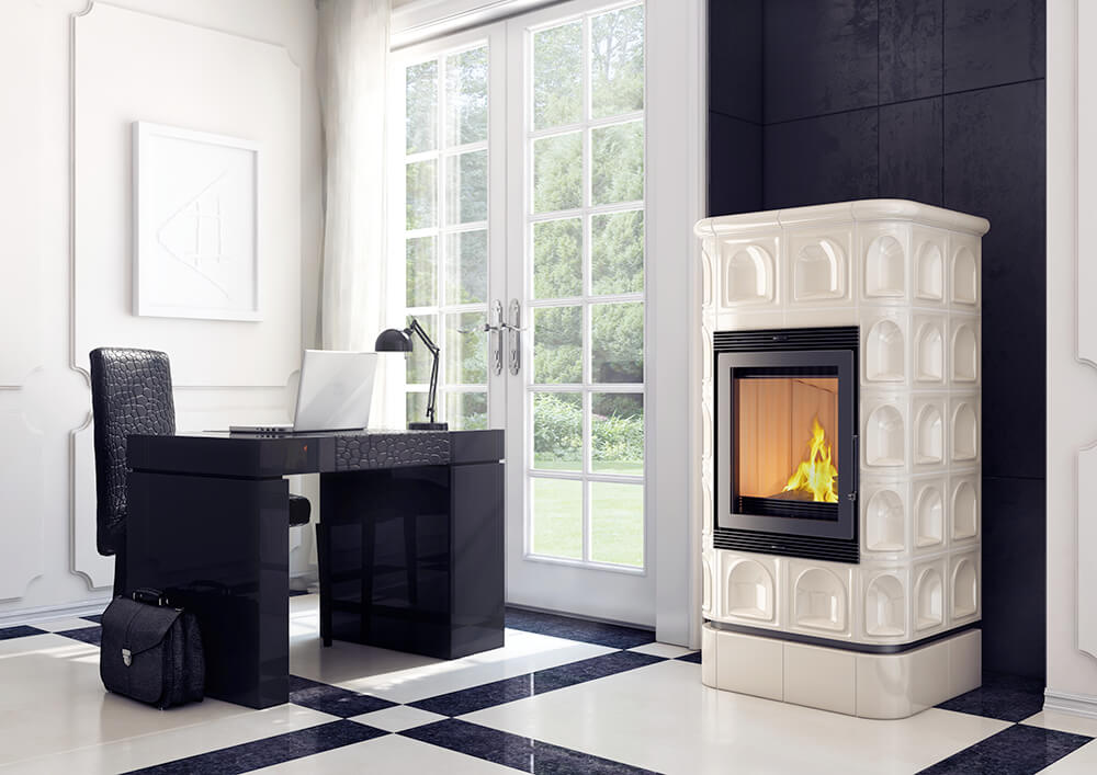 Poêle à Bois 136,5x71,5x59,8cm Flig Raleigh Crème avec Carreaux Crème