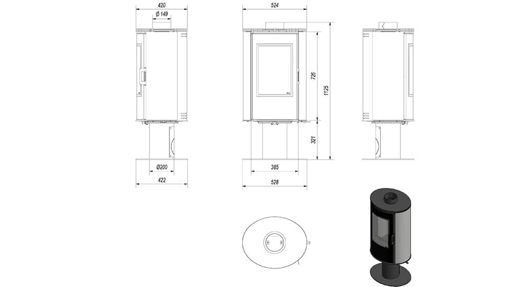 Le corps rotatif permet d'admirer le feu de n'importe où dans la pièce.