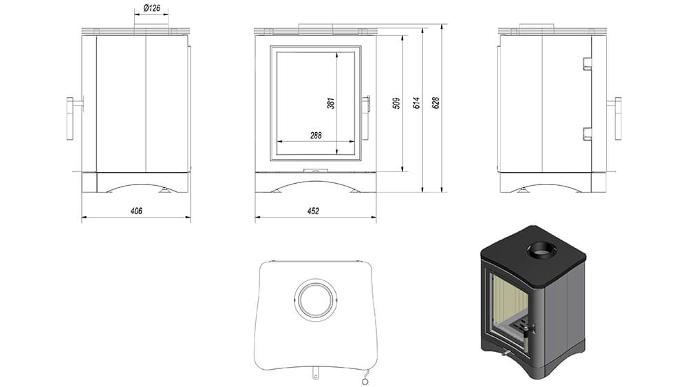 Poêle à Bois 5,5/9rKW en Fonte et Acier 62,80x406x45,20cm Flig Warren 130 130 Noir