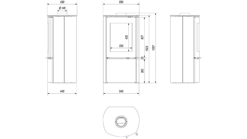 De plus, le poêle est doté d'un système de vitre propre (rideau d'air), c'est-à-dire que l'air est acheminé directement vers la vitre par le système de conduits situés sur les côtés du foyer. De cette manière, l'oxygène est amené au sommet de la chambre de combustion, ce qui brûle les gaz produits par le processus de combustion, ce qui limite encore l'émission de CO nocif dans l'atmosphère.
